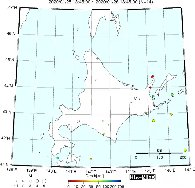 ●Hi-net日本地震分布(過去24時間)・・・小笠原のデータは掲載日がずれて反映されるようです(翌々日に掲載)