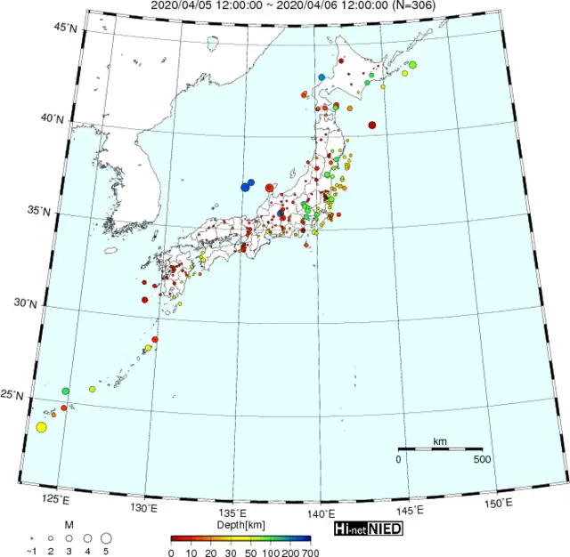 ●Hi-net日本地震分布(過去24時間)・・・小笠原のデータは掲載日がずれて反映されるようです(翌々日に掲載)
