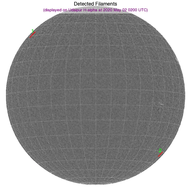 ※フィラメント:北半球東端と南半球西端に小さなフィラメントがあります