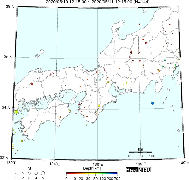 ●Hi-net日本地震分布(過去24時間)・・・小笠原のデータは掲載日がずれて反映されるようです(翌々日に掲載)
