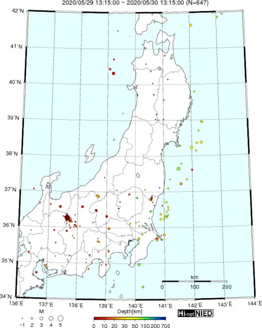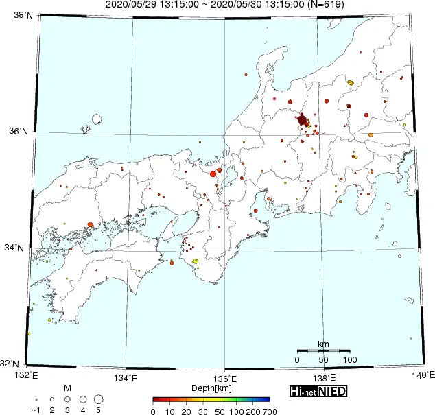 ●Hi-net日本地震分布(過去24時間)・・・小笠原のデータは掲載日がずれて反映されるようです(翌々日に掲載)