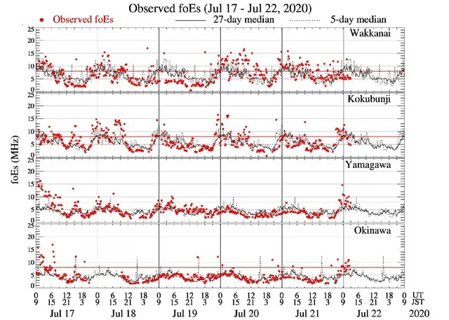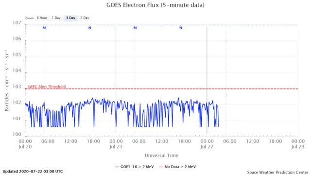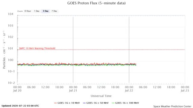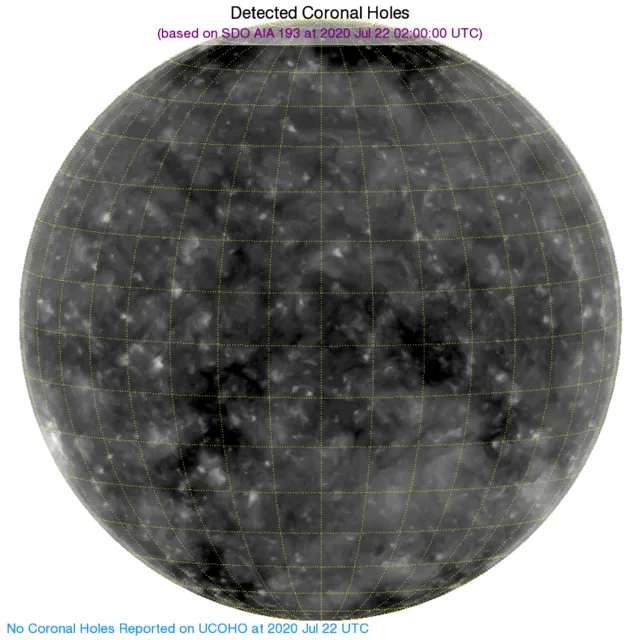 画像にはありませんが、赤道やや南西寄りに小さなコロナホールがあります。影響が23日くらいから届くかも