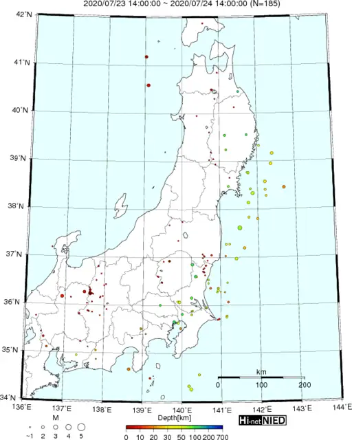 ●Hi-net日本地震分布(過去24時間)・・・小笠原のデータは掲載日がずれて反映されるようです(翌々日に掲載)