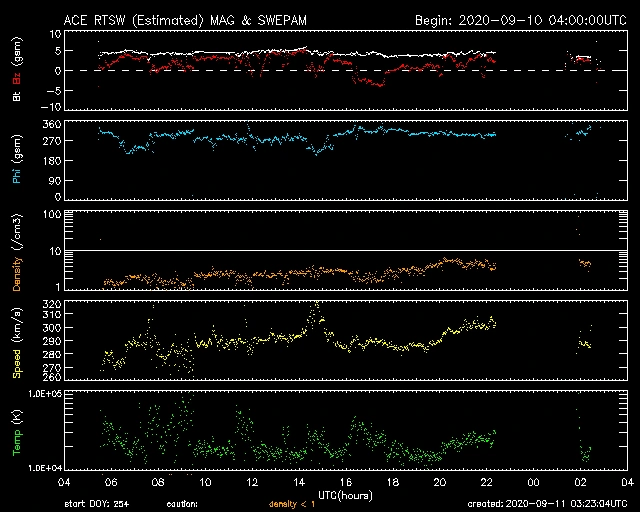 一時450km/s前後だった時間帯がありますが、引き続き280km/s前後で推移しています
