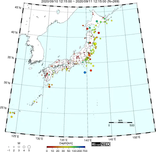 ●Hi-net日本地震分布(過去24時間)・・・小笠原のデータは掲載日がずれて反映されるようです(翌々日に掲載)