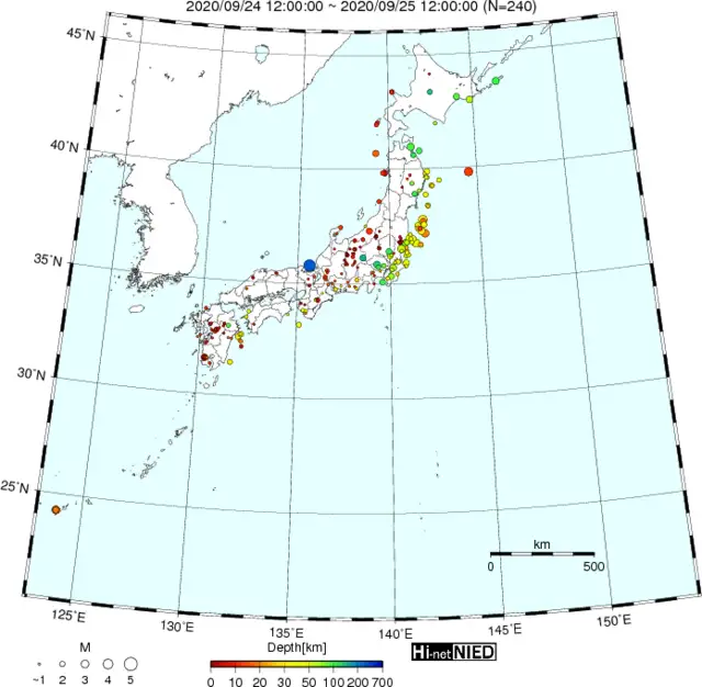 ●Hi-net日本地震分布(過去24時間)・・・小笠原のデータは掲載日がずれて反映されるようです(翌々日に掲載)