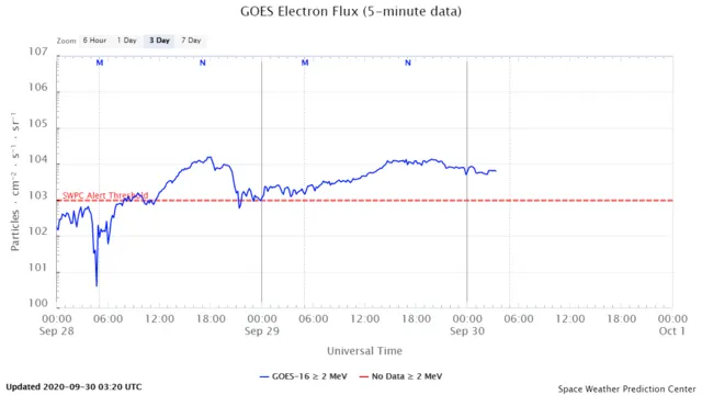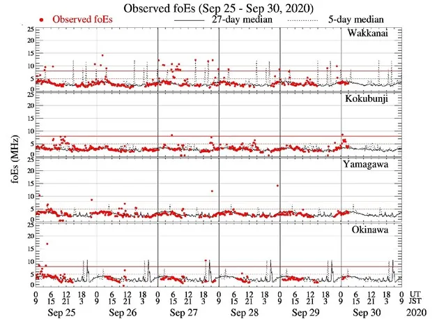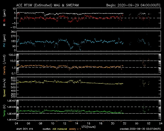 速度にバラツキがありますが、引き続き610km/s前後で推移しています