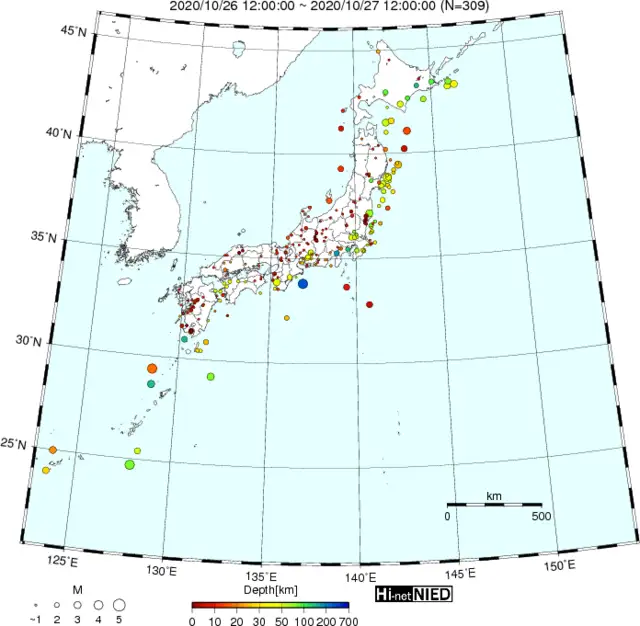●Hi-net日本地震分布(過去24時間)・・・小笠原のデータは掲載日がずれて反映されるようです(翌々日に掲載)