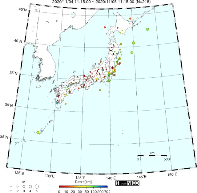 ●Hi-net日本地震分布(過去24時間)・・・小笠原のデータは掲載日がずれて反映されるようです(翌々日に掲載)