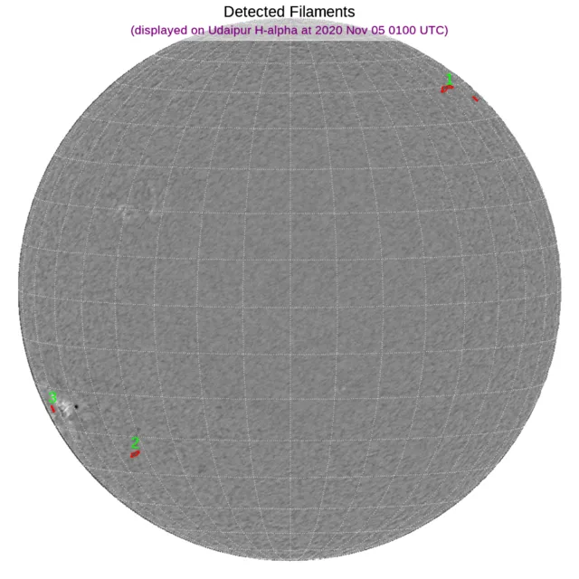 ※フィラメント:南半球東端と北半球西端に小さなフィラメントがあります