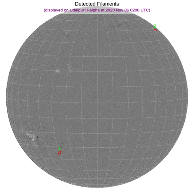 ※フィラメント:南半球東端と北半球西端に小さなフィラメントがあります