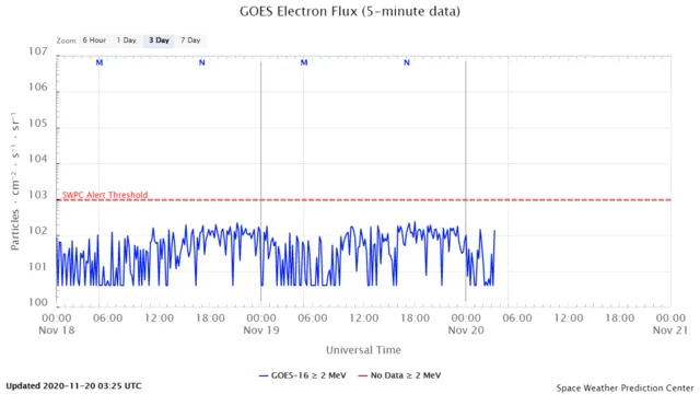 320km/s前後で推移していましたが徐々に上がり、現在380km/s前後で推移しています