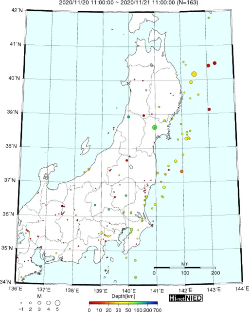 ●Hi-net日本地震分布(過去24時間)・・・小笠原のデータは掲載日がずれて反映されるようです(翌々日に掲載)