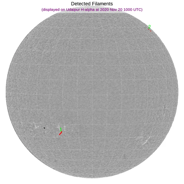※フィラメント:南半球東側と北半球西端に小さなフィラメントがあります