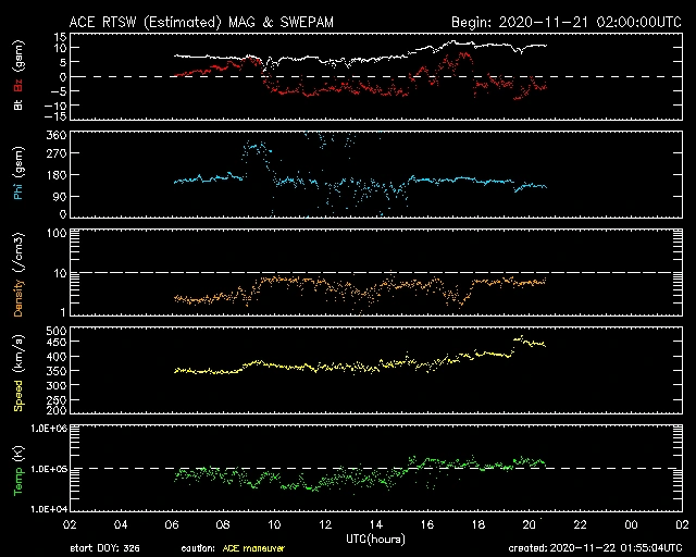 350km/s前後で推移してましたが徐々に上がり、現在530km/s前後で推移しています