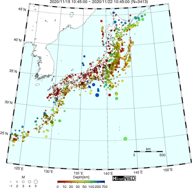 ●Hi-net日本地震分布(過去24時間)・・・小笠原のデータは掲載日がずれて反映されるようです(翌々日に掲載)