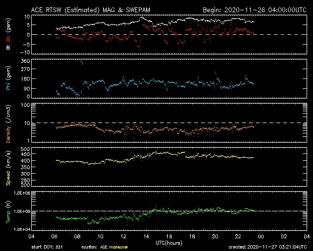 400km/s前後で推移していましたが徐々に上がり一時470km/s前後まで上がりました。現在は420km/s前後で推移しています