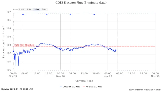 430~470km/s前後の間で推移していましたが徐々に下がり、現在400km/s前後で推移しています