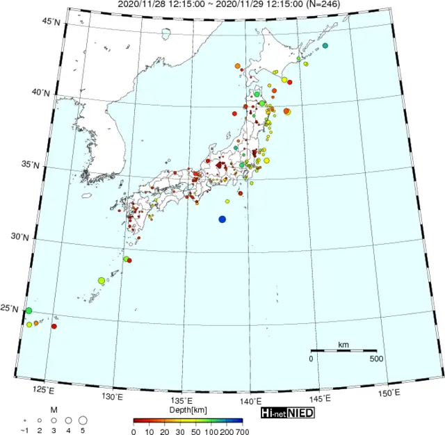 ●Hi-net日本地震分布(過去24時間)・・・小笠原のデータは掲載日がずれて反映されるようです(翌々日に掲載)