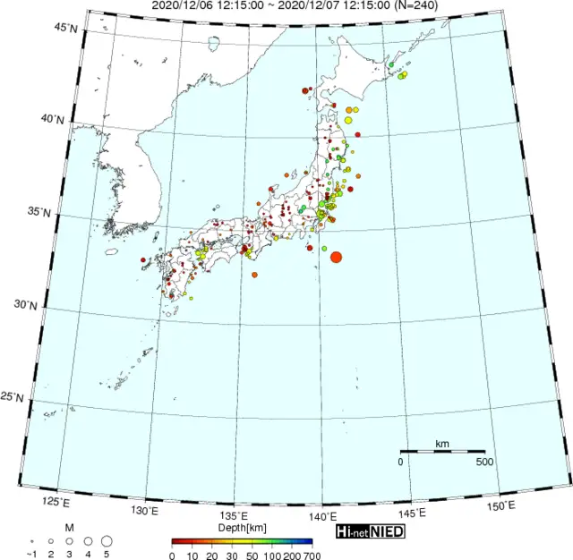 ●Hi-net日本地震分布(過去24時間)・・・小笠原のデータは掲載日がずれて反映されるようです(翌々日に掲載)