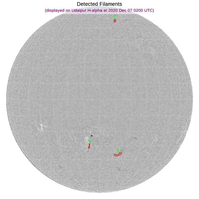 ※フィラメント:北の極付近と南半球(高緯度)中央付近に小さなフィラメントがあります