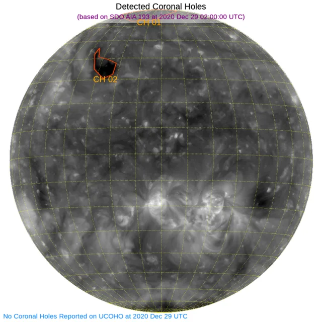 北の極と北半球(やや高緯度)東側に小さなコロナホールがあります