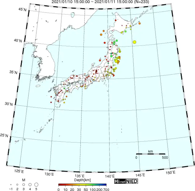 ●Hi-net日本地震分布(過去24時間)・・・小笠原のデータは掲載日がずれて反映されるようです(翌々日に掲載)