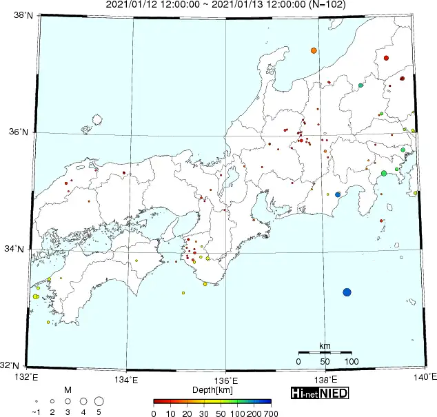 ●Hi-net日本地震分布(過去24時間)・・・小笠原のデータは掲載日がずれて反映されるようです(翌々日に掲載)