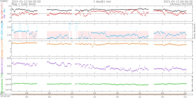 一時470km/s前後まで上がりましたが徐々に下がり、現在430km/s前後で推移しています