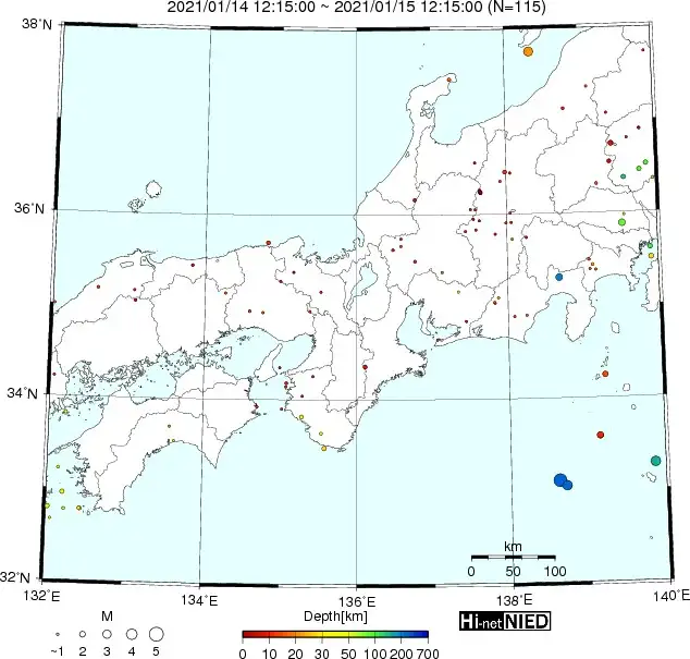 ●Hi-net日本地震分布(過去24時間)・・・小笠原のデータは掲載日がずれて反映されるようです(翌々日に掲載)