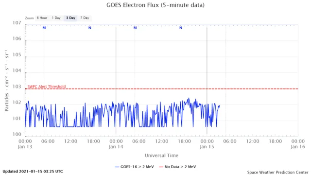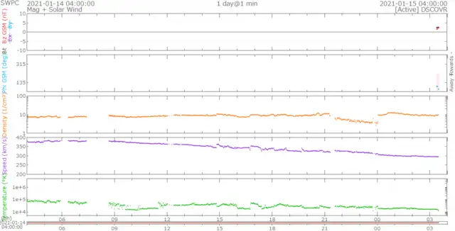 磁場は、南北に大きく振れた後、やや北寄り(磁場情報はNOAAより)