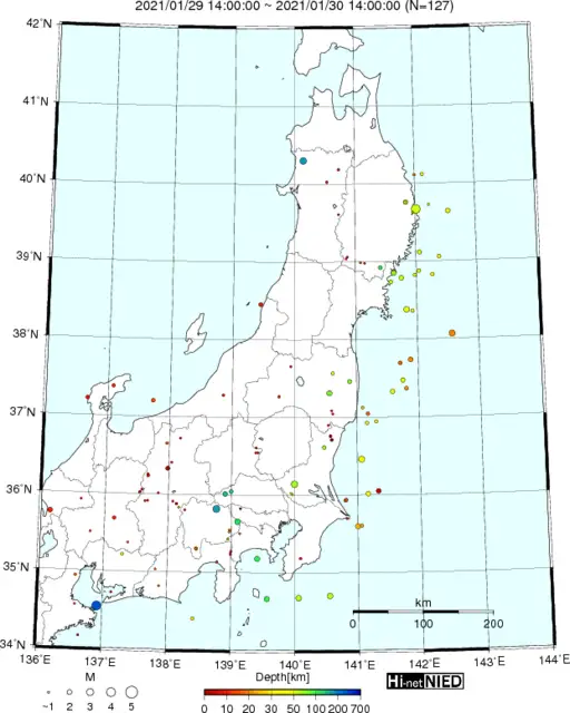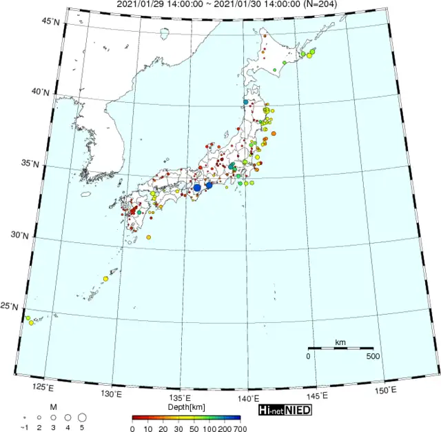 ●Hi-net日本地震分布(過去24時間)・・・小笠原のデータは掲載日がずれて反映されるようです(翌々日に掲載)