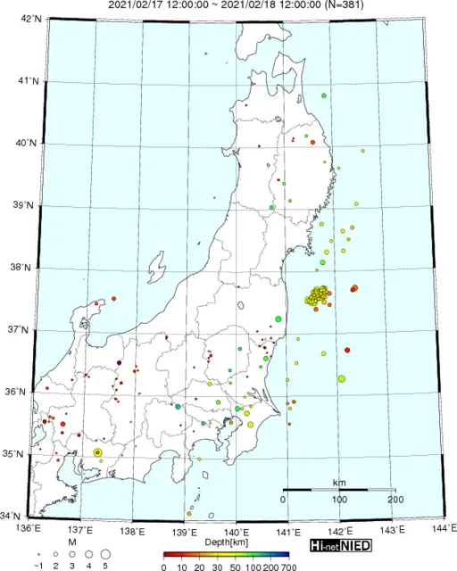 ●Hi-net日本地震分布(過去24時間)・・・小笠原のデータは掲載日がずれて反映されるようです(翌々日に掲載)
