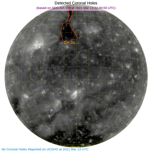 現時点で地球正面の黒点群はありません。←黒点番号が振られていない活動領域でもフレアは発生しますので、あくまで目安として捉えてください。