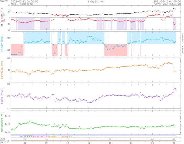 320km/s前後まで下がりましたが徐々に上がり、現在380km/s前後くらいで推移しています(これから更に上がるかも)
