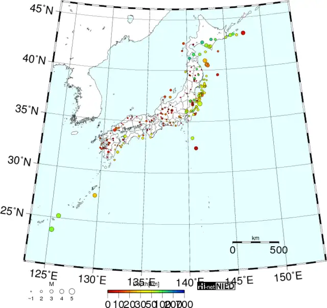●Hi-net日本地震分布(過去24時間)・・・小笠原のデータは掲載日がずれて反映されるようです(翌々日に掲載)