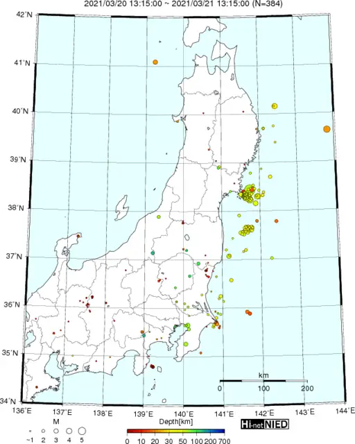 ●Hi-net日本地震分布と気象庁・・・hi-netの小笠原のデータは掲載日がずれて反映されるようです(翌々日に掲載)。掲載されないものもあるようなので気象庁の画像も付けます