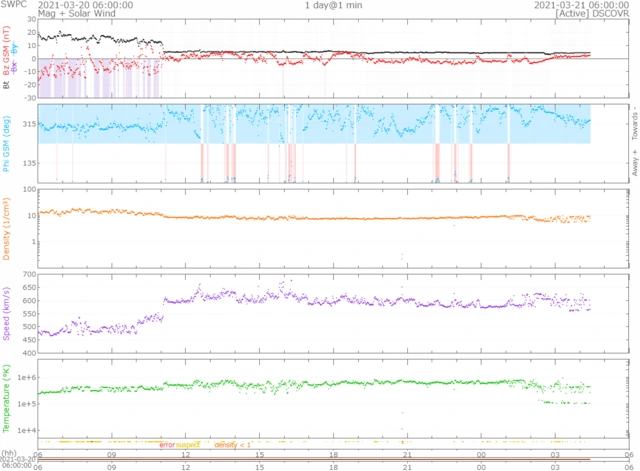 480km/s前後で推移していましたが上がり、現在600km/s前後で推移しています