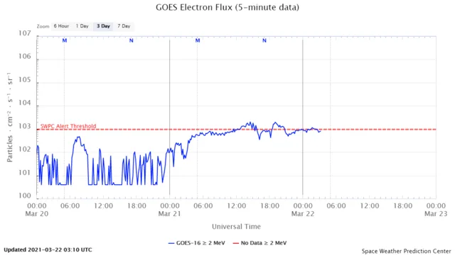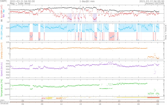 600km/s前後で推移していましたが更に上がり、現在640km/s前後で推移しています