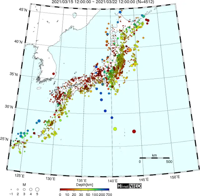 ●Hi-net日本地震分布と気象庁・・・hi-netの小笠原のデータは掲載日がずれて反映されるようです(翌々日に掲載)。掲載されないものもあるようなので気象庁の画像も付けます
