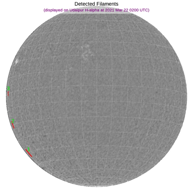 現時点で地球正面の黒点群はありません。←黒点番号が振られていない活動領域でもフレアは発生しますので、あくまで目安として捉えてください。