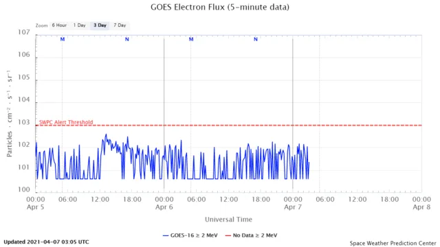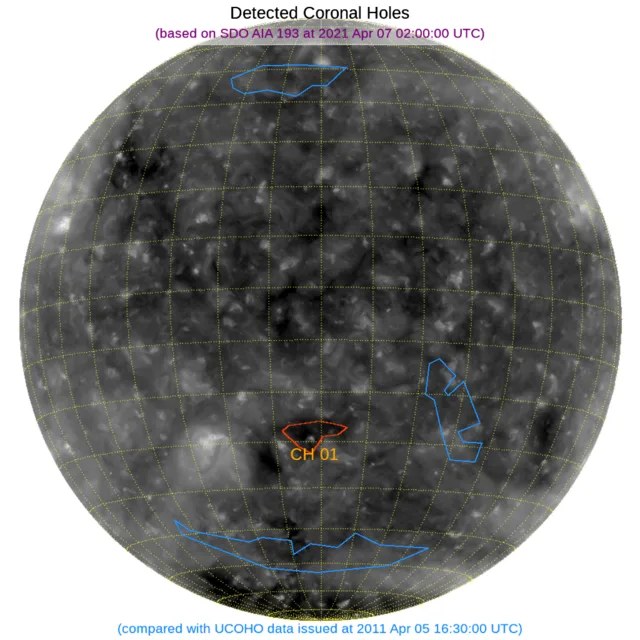 現時点で地球正面の黒点群はありません。←黒点番号が振られていない活動領域でもフレアは発生しますので、あくまで目安として捉えてください。