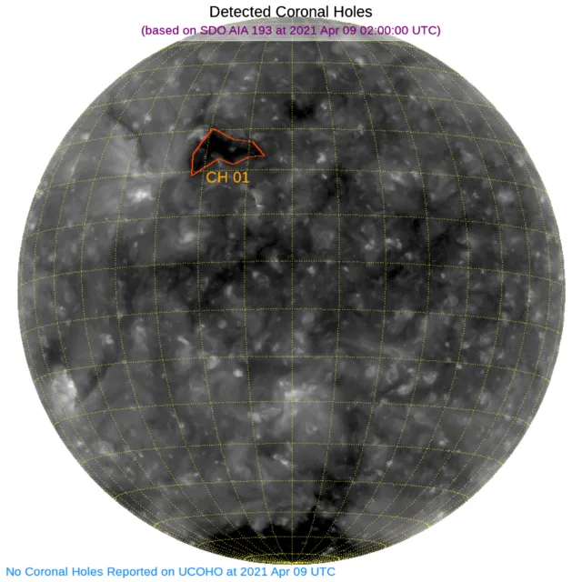 北半球(やや高緯度)東寄りに小さなコロナホールがあります