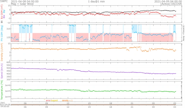 500km/s前後で推移していましたが徐々に下がり、現在410km/s前後で推移しています