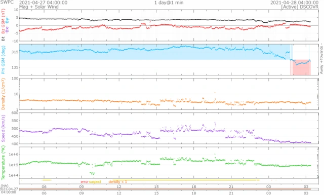 一時520km/sまで上がりましたが、徐々に下がり、現在410km/s前後で推移しています