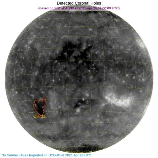 現時点で地球正面の黒点群はありません。←黒点番号が振られていない活動領域でもフレアは発生しますので、あくまで目安として捉えてください。