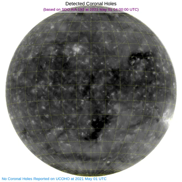 現時点で地球正面の黒点群はありません。←黒点番号が振られていない活動領域でもフレアは発生しますので、あくまで目安として捉えてください。
