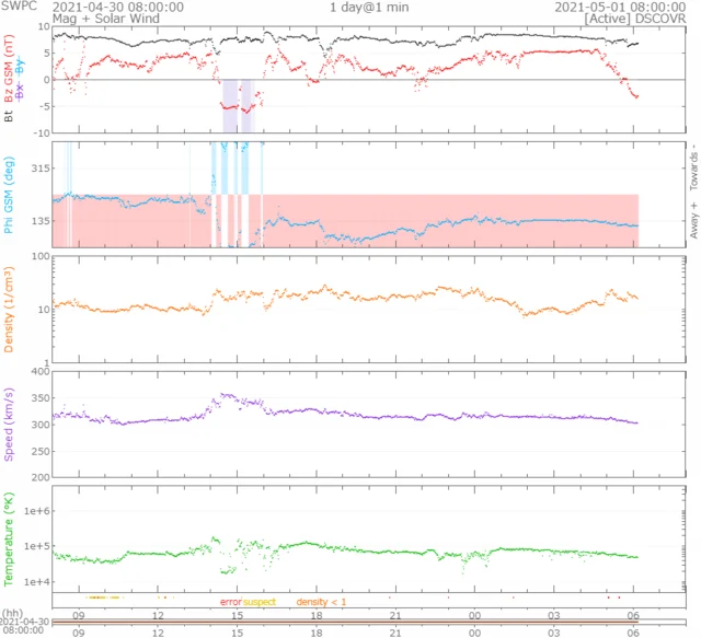 一時350km/sまで上がりましたが、引き続き300km/s前後で推移しています