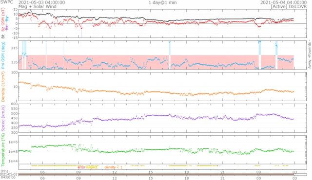 370km/s前後で推移していましたが徐々に上がり、現在440km/s前後で推移しています