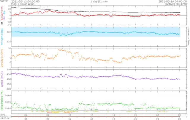 470km/s前後で推移していましたが徐々に下がり、現在400km/s前後で推移しています